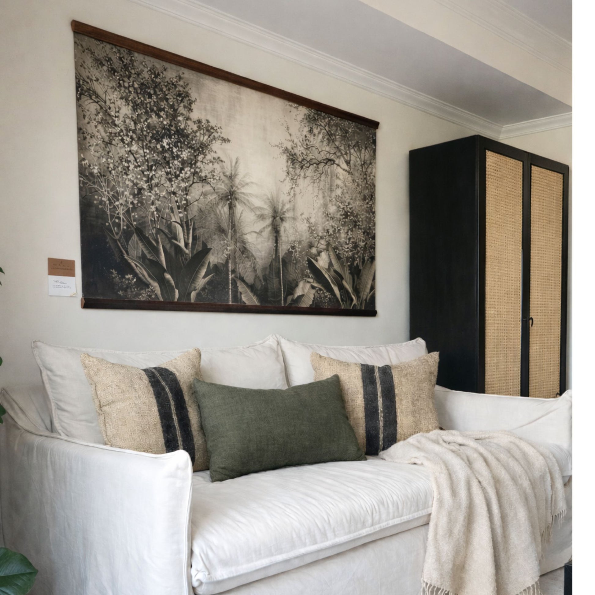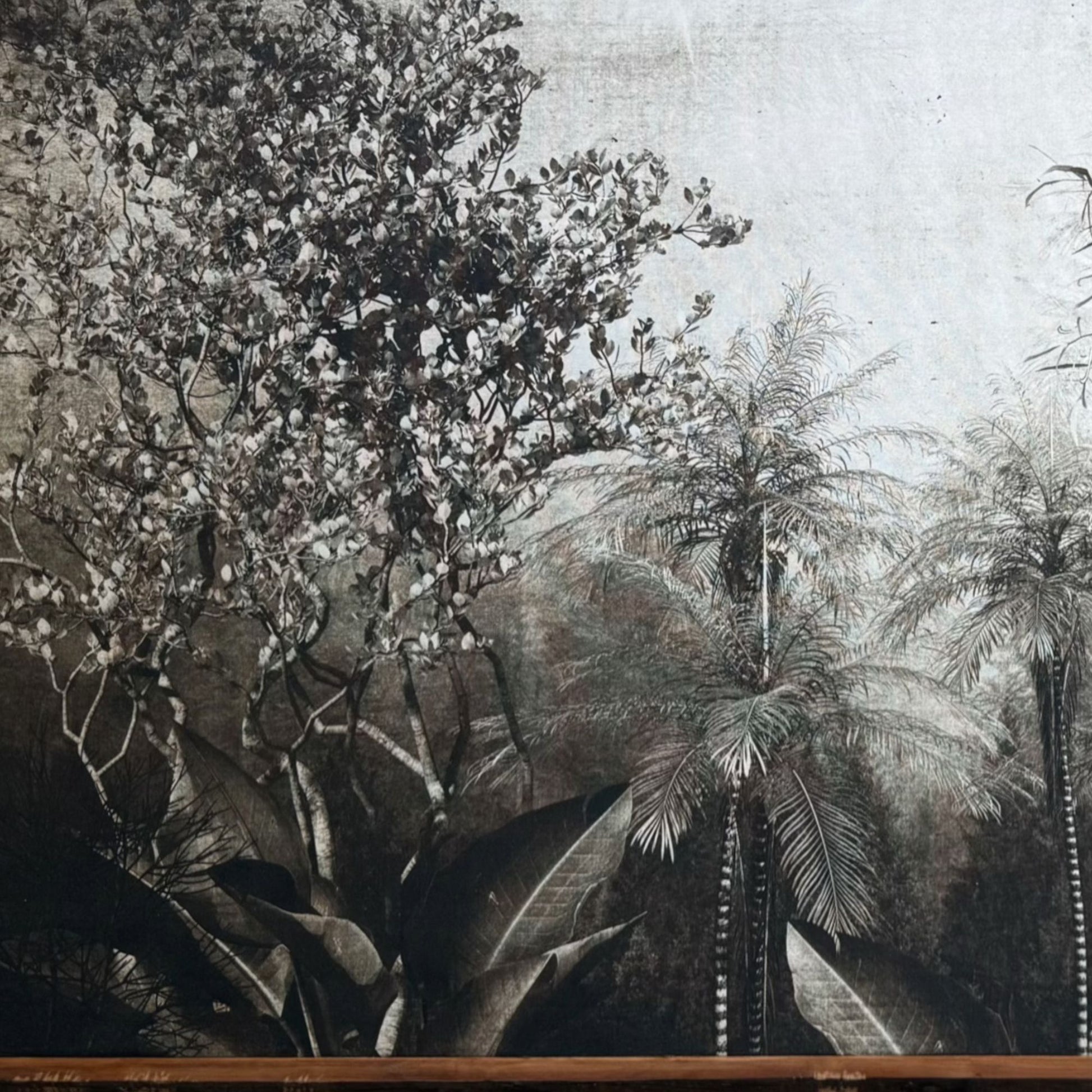 Descripción: Fotografía artística impresa en lona, montada sobre bastidores de madera rústica. Una pieza que explora la profundidad y quietud de la naturaleza a través de una paleta neutra y atemporal. Las capas vegetales, sutilmente desaturadas, generan un efecto envolvente que aporta calma, carácter y sofisticación a cualquier espacio. Perfecta para acompañar muebles de líneas simples y materiales nobles, esta obra dialoga de manera armónica con interiores contemporáneos y orgánicos.