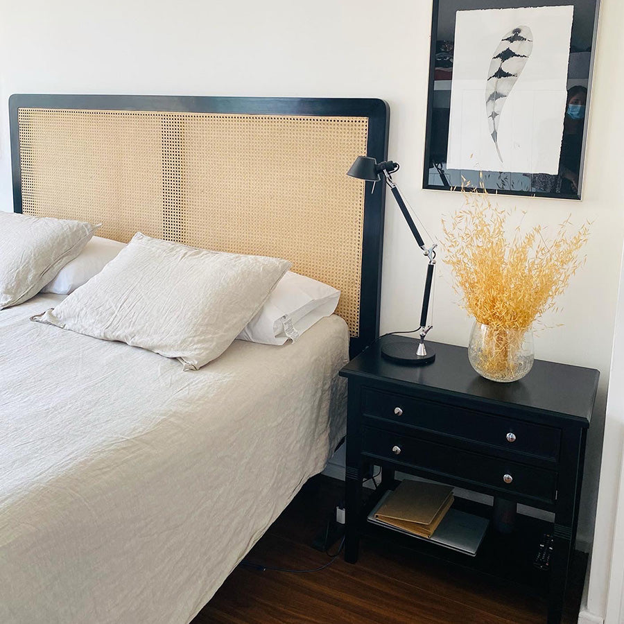 Un respaldo liviano y elegante de líneas simples, está fabricado en madera con interior de junco natural tejido artesanalmente.
