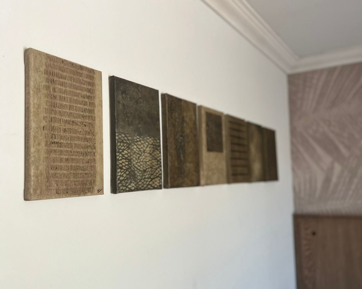 Terracalma Estudio es un espacio donde la naturaleza se traduce en obras contemporáneas de tonos orgánicos y atmósferas serenas. Cada pieza se construye con materiales nobles, pastas, minerales y acrílicos, que aportan profundidad, relieve y textura sutil. También realizo obras a pedido, ajustando medidas, formato y paleta para que dialoguen con el espacio y la calma que buscas.